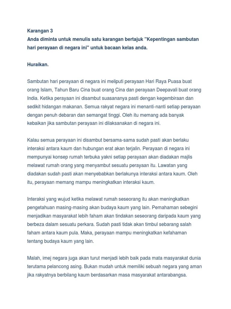 Ia juga mengharapkan kerja sama kedua negara bisa mengarah ke jalan … Anda boleh menggunakan contoh karangan di bawah sebagai panduan untuk membantu dalam. Tahun baru cina, deepavali merupakan perayaan utama yang boleh diraikan oleh seluruh masyarakat pelbagai kaum.
